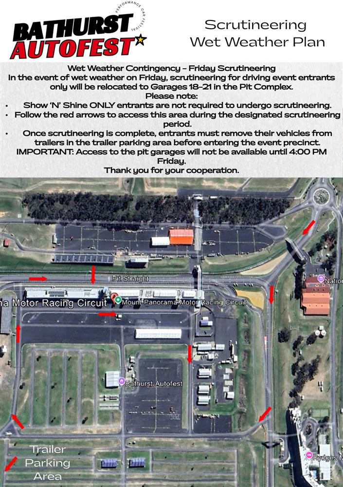 Scrutineering will be held at the Autofest Office